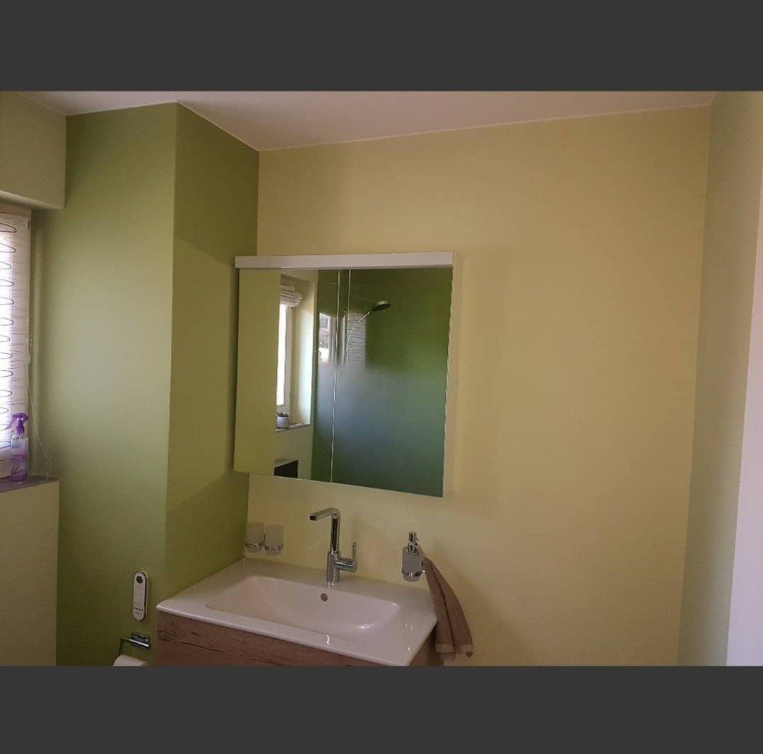 Mit einer vollflächigen Verspachtelung der alten Plättli wird ein idealer Untergrund für das System aufgebaut, welchen danach mit deiner Wunschfarbe beschichtet wird, und zum Schluss wird es noch mit einem Mattlack versiegelt.